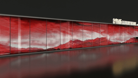 红色山脉随LIDI窗纱的光影轻轻呼吸。