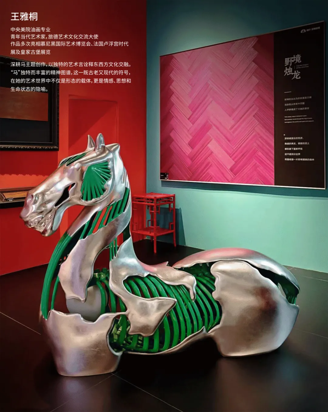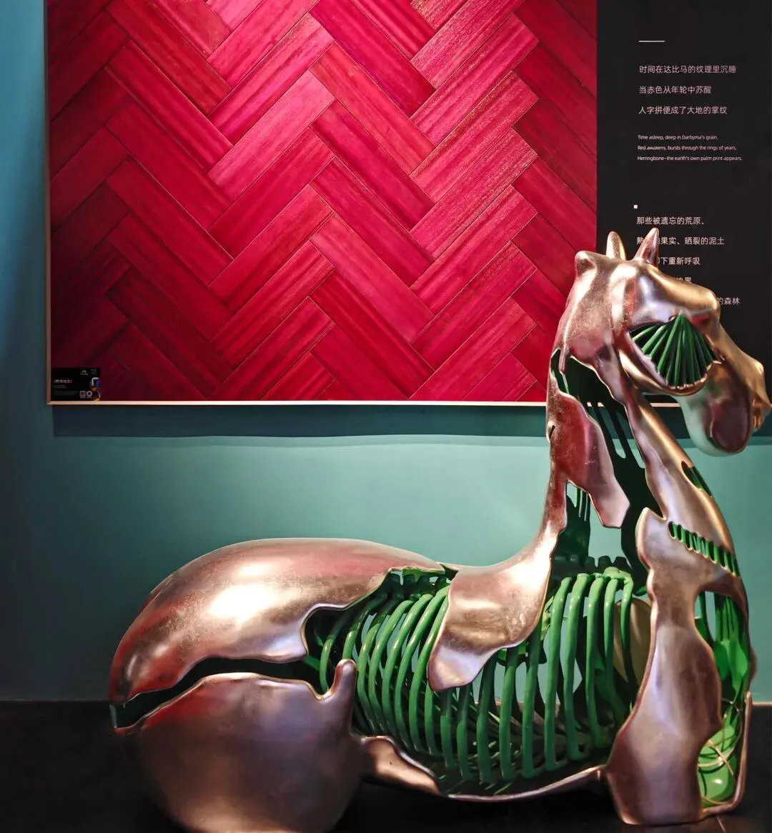 柏尔的木质肌理,被嵌入画框,如共生的艺术,悬于方柱与拱林之间。王雅桐【MA+】的骏马雕塑静立一隅,与此间精神默然对话。这不是陈列,是播种。一木一石,皆是静默的遗珠,于内庭中构成世界最初的印象。拱形柱列,勾勒出精神的林木。