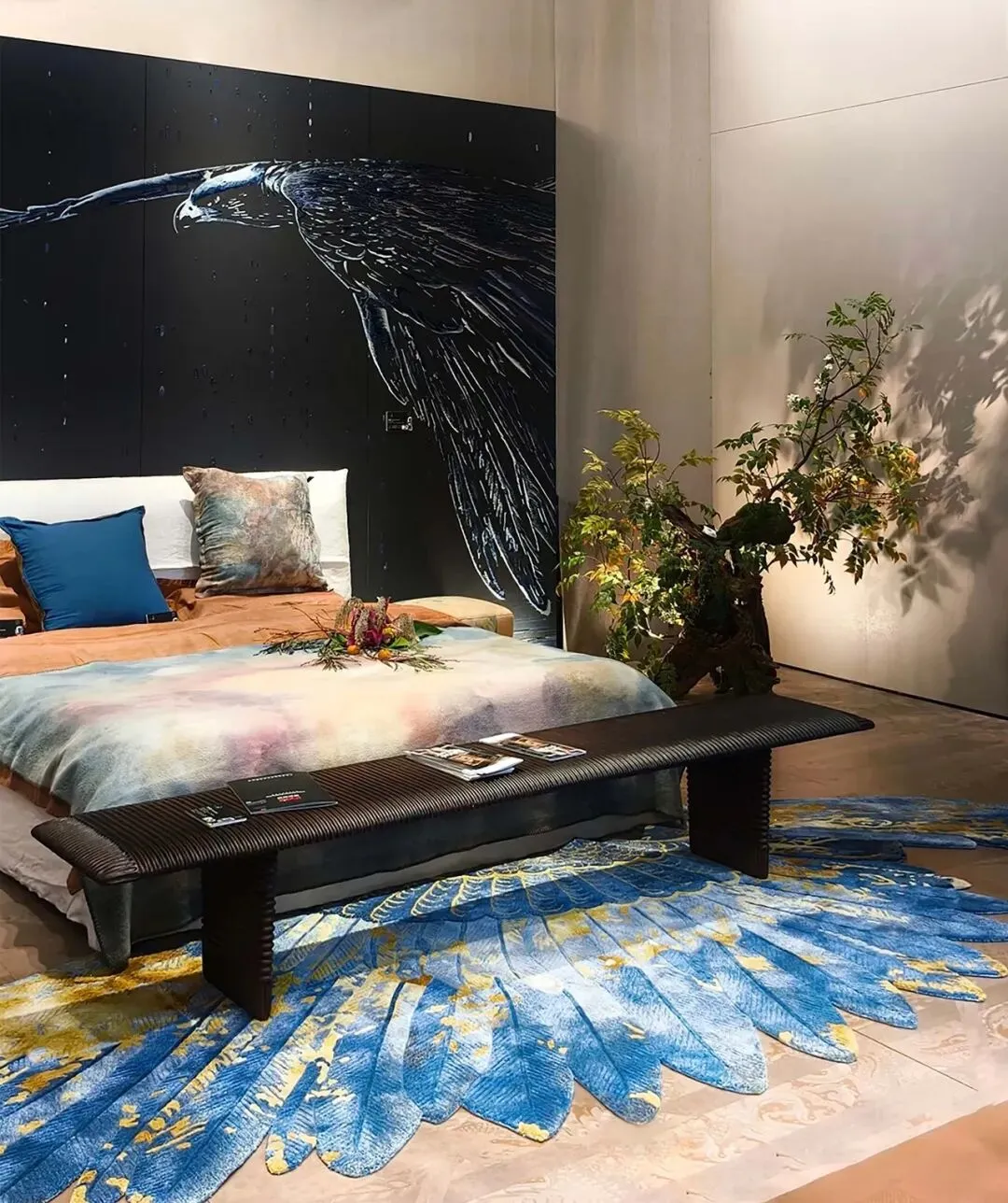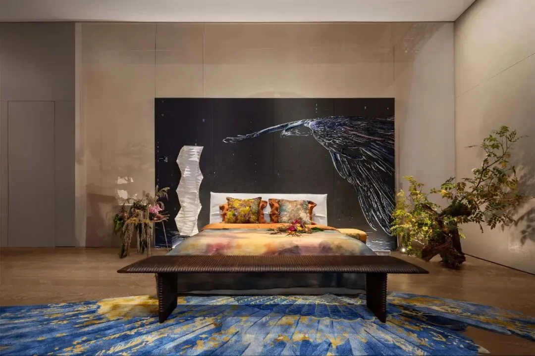 于此,鹰牌生活以WELL健康人居体系为基,筑就自由天地;羽翼落为地毯,翔姿凝作皮雕;悠悠旷野-肖栗老师的草木染天然床品;灵动的飞鹰贯穿其间,无声叙事;萨玛尼的家具,以温润质感成为羽翼栖息的枝干;林克维茨音响定义声场心境,科沃斯机器人守护静谧秩序;突尼咖啡,则为朝夕生活注入不变的醇香温度。