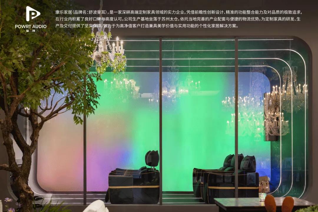 四周,品牌小展如星罗棋布。在宝特、皓逸、舒波斐耳共筑的声影殿堂,感受沉浸;