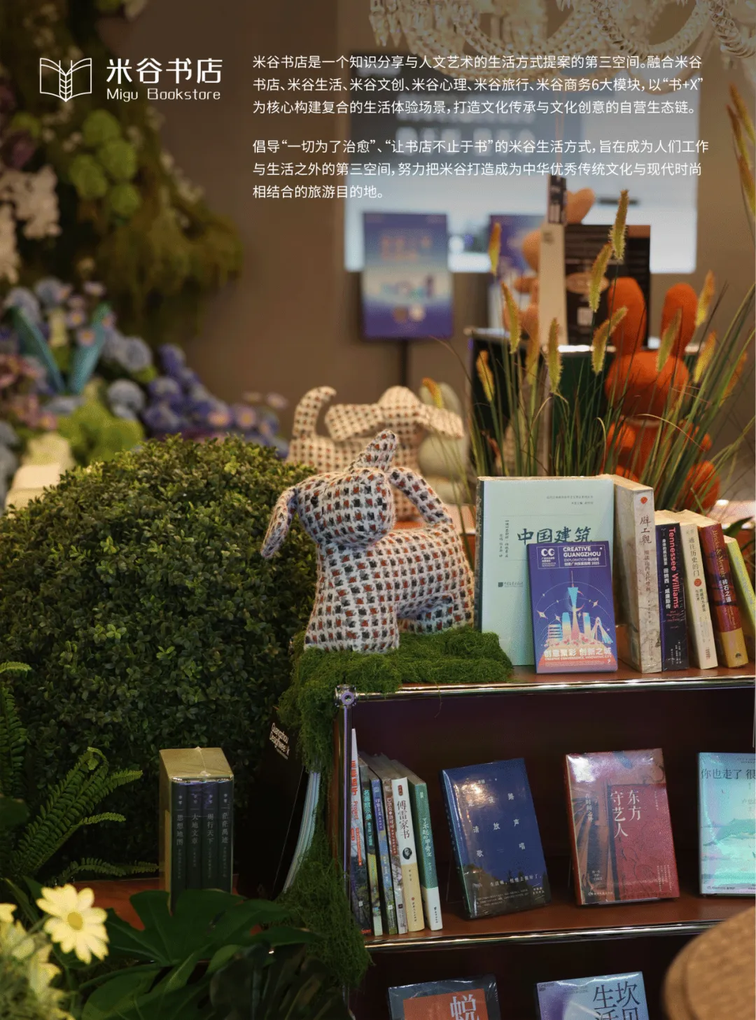 裕龙花艺的丘峦起伏;米谷书店与萨玛尼家具设下自然座席。