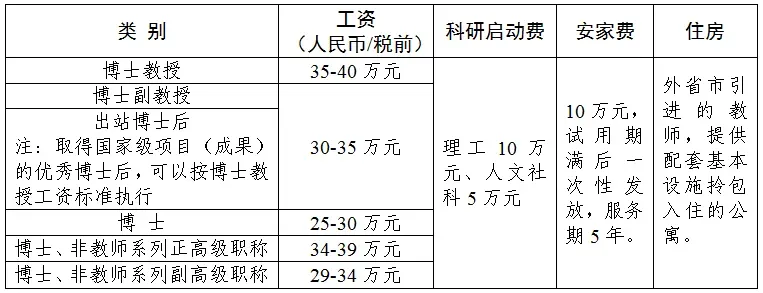 注:根据应聘人的学历、职称、业绩成果及承担的聘期工作任务协商工资标准。