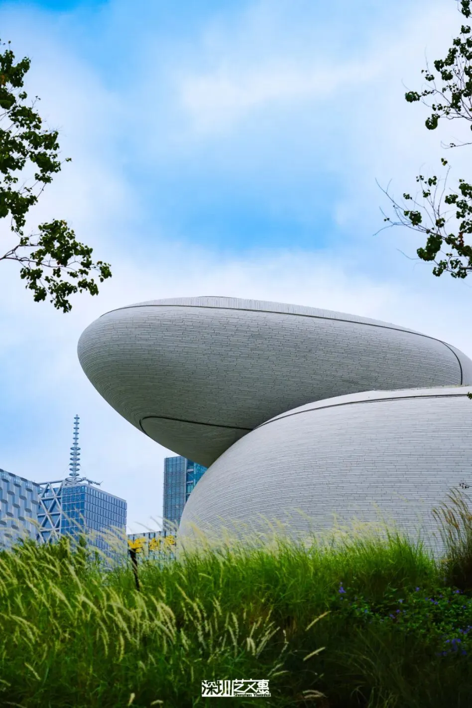 图源:深圳艺文惠公园的最大王牌,就是那条长达2公里的湖滨杉林栈道。漫步其上,仿佛走入一条时空隧道,两侧的落羽杉万株齐聚,在冬日里悄然披上由金黄渐变为绯红的“霓裳”,阳光透过层层针叶,在水面洒下碎金般的光影。图源:深圳艺文惠 最近在深圳湾游玩的小伙伴应该都注意到了一个“巨型AirPods”🎧,这就是深圳文化新地标——深圳湾文化广场。9栋建筑像海边原石一样自然堆叠,内部18万㎡超大空间,够你游玩一整天!