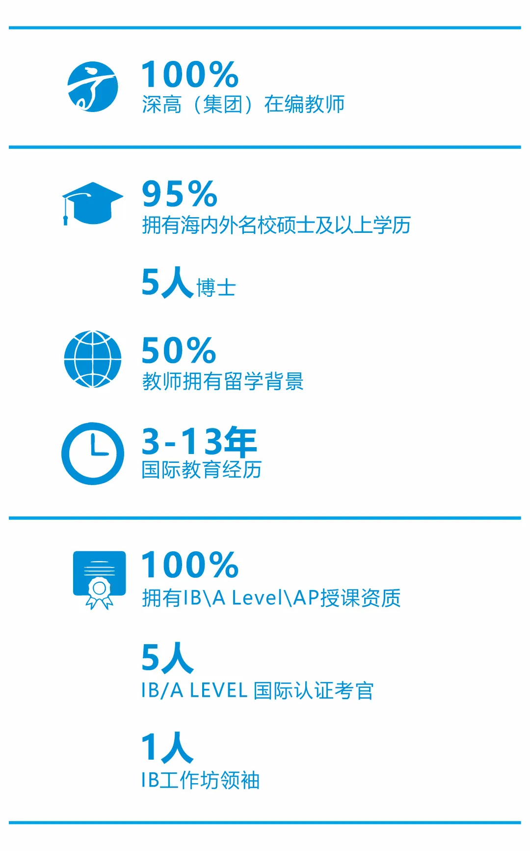 深高国际课程体系的教师,是国际教育领域的 “硬核天团”!有深耕IB课程的国际认证考官,以一线教学经验精准锚定考评方向;有培育出全球顶尖成绩(Top of the World)学生的A Level考官,硬核资质与实战成果兼具;有AP 认证教师深度融合课堂,助力学生直击核心知识;有三年全程护航的班主任团队,以专业洞察与丰富经验,精准定位学生优势,助力学生叩响世界名校之门。