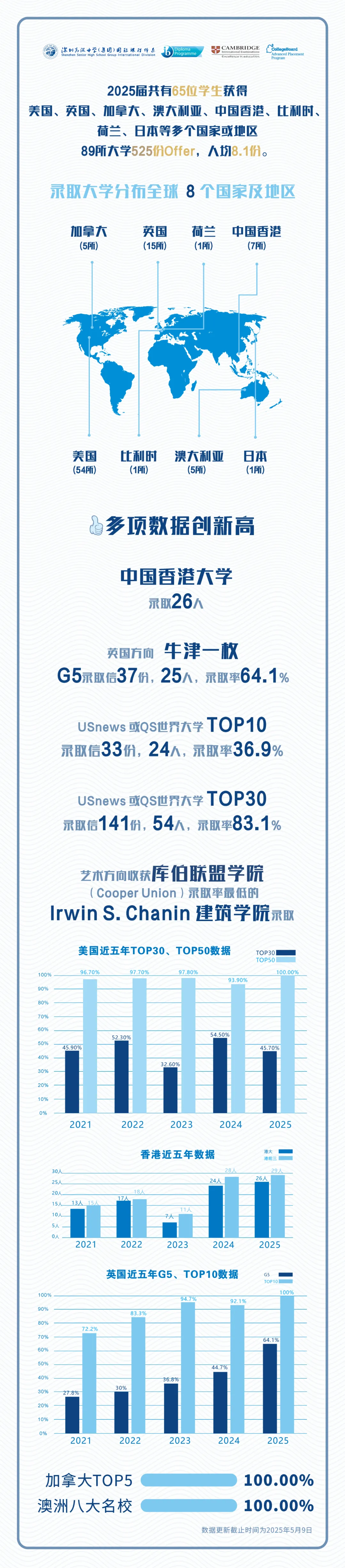 在全球顶尖名校录取率持续走低、申请竞争白热化的背景下,深高(集团)国际课程体系科学调整管理及教学模式,通过精细化升学规划、个性化背景提升、多国联申策略,助力学子以卓越的升学实力在全球舞台上绽放光芒。