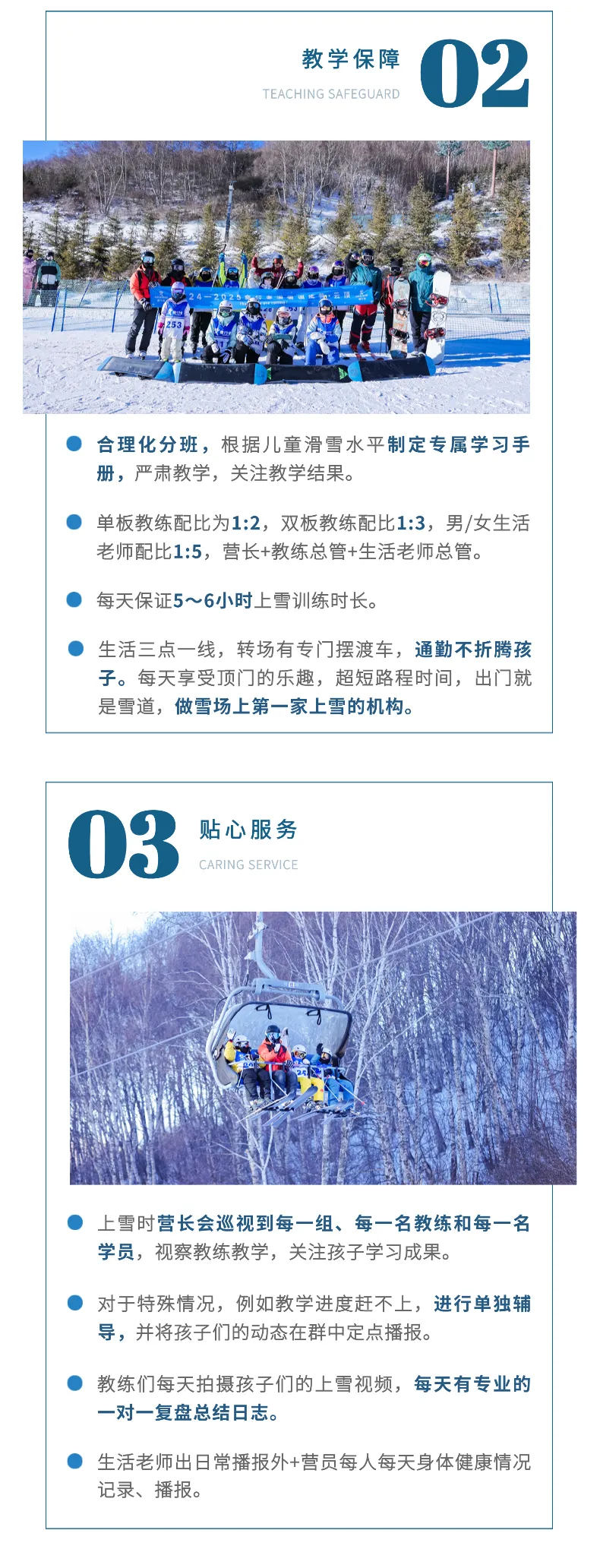 A:教练配比双板为1:3,单板为1:2,生活老师比例为1:5。