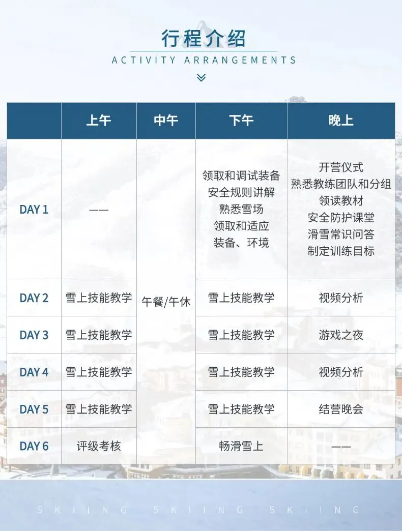 6. 滑雪营期内的晚间主题活动;