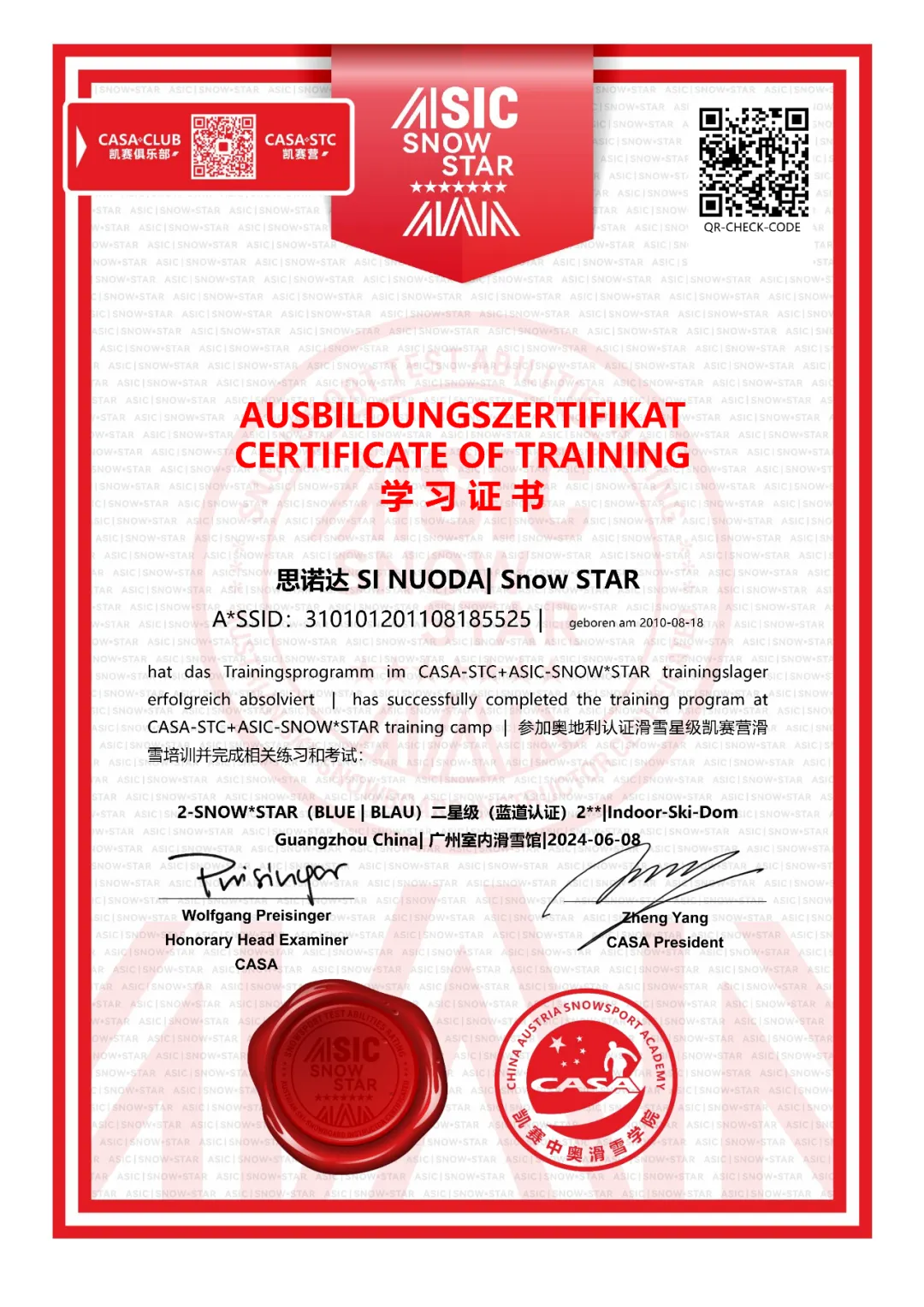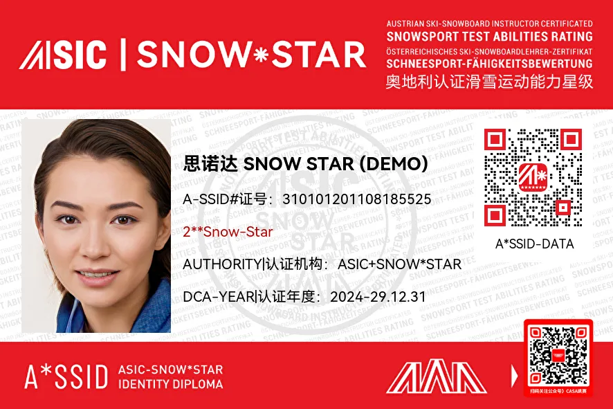 这个雪季,我们给孩子们更多的专业滑雪认证选择。除了原有的国内滑雪等级评定认证之外,有国际认证需求的孩子们,也可以选择ASIC-SNOW*STAR奥地利(儿童及青少年)认证。