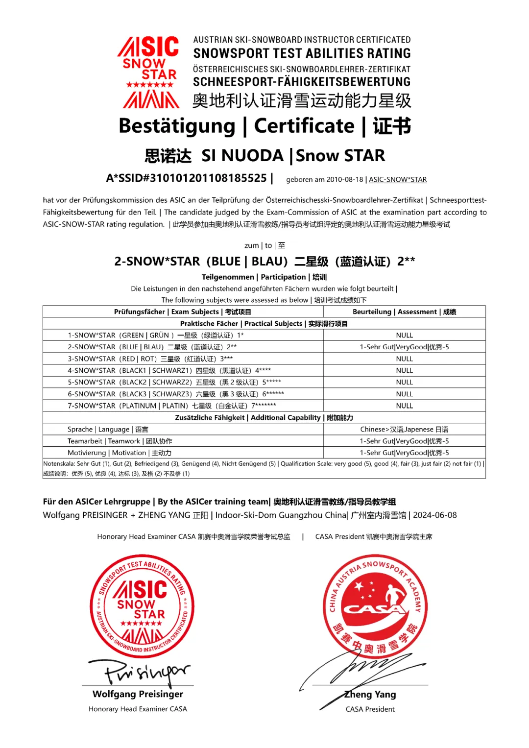奥地利滑雪体系是世界公认的严谨、高水平运动体系之一,与加拿大等滑雪体系CSIA-CASI互相承认。星级评定只针对未成年人。孩子成年之后,可以直接进行奥地利滑雪专业等级认证。