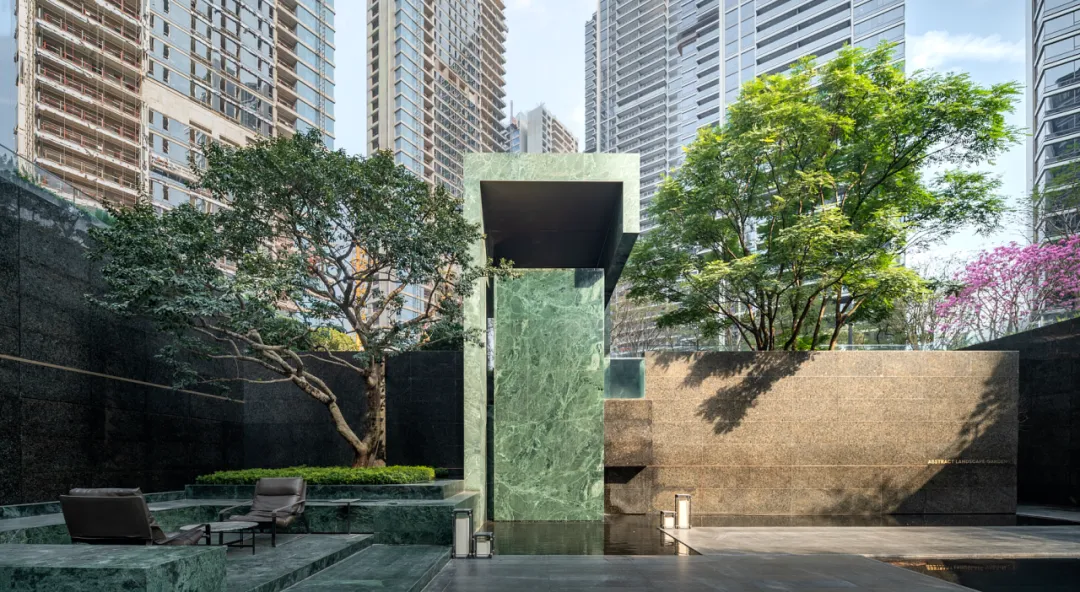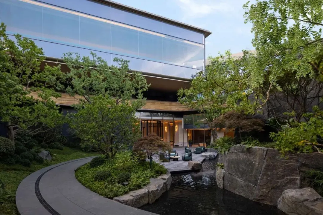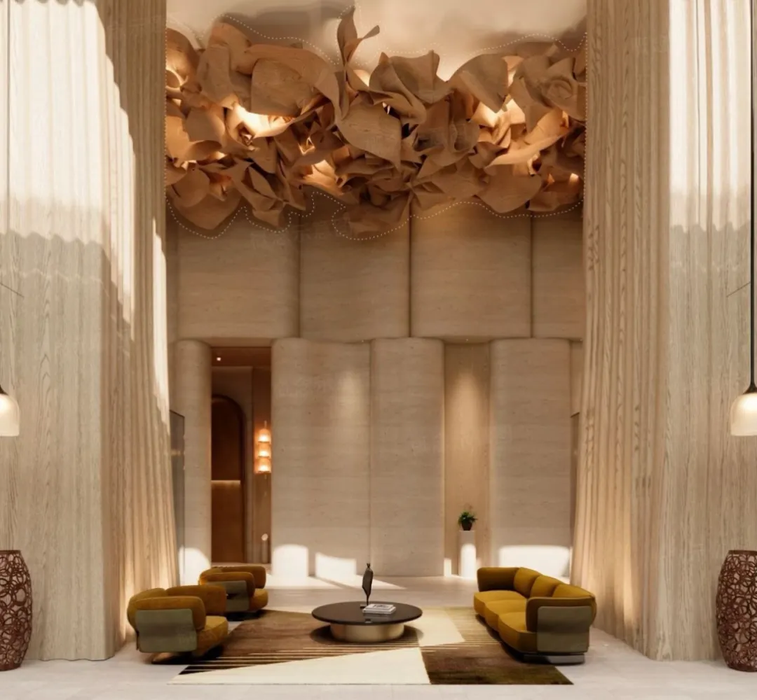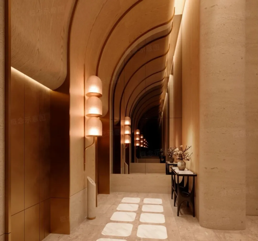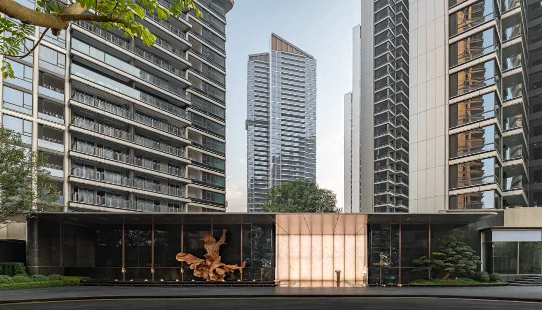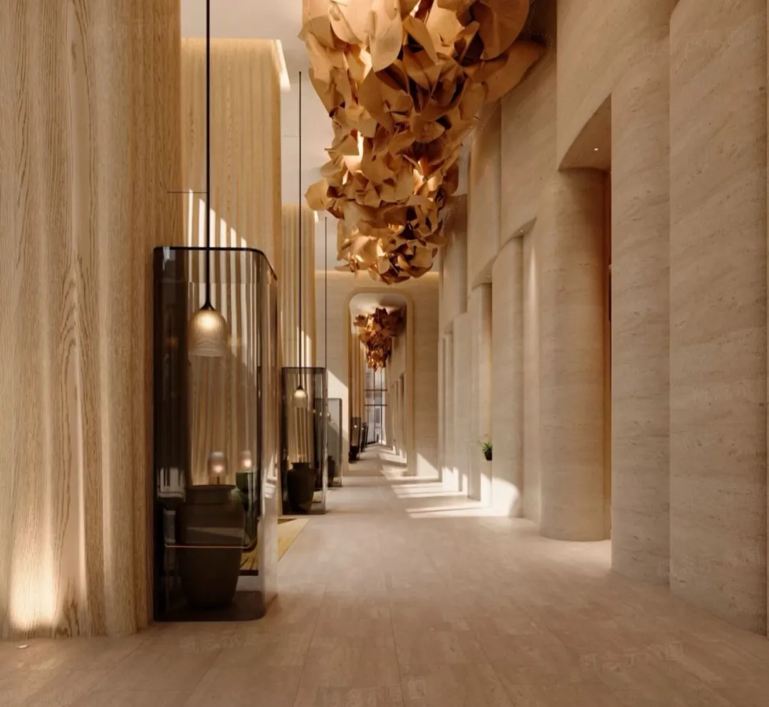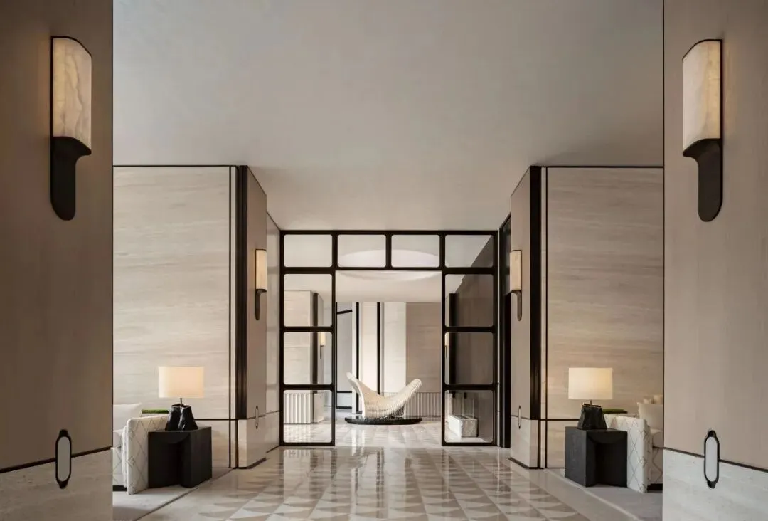 渡边智昭设计单元大堂等公共空间,以东方静谧融合西方美学,营造国际化生活方式。