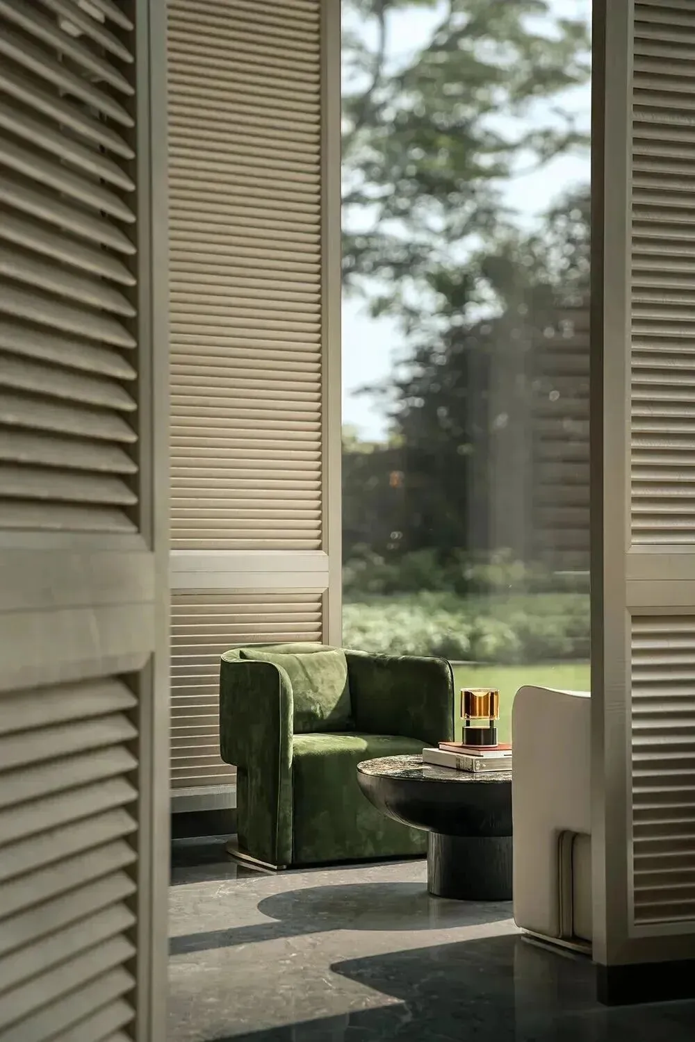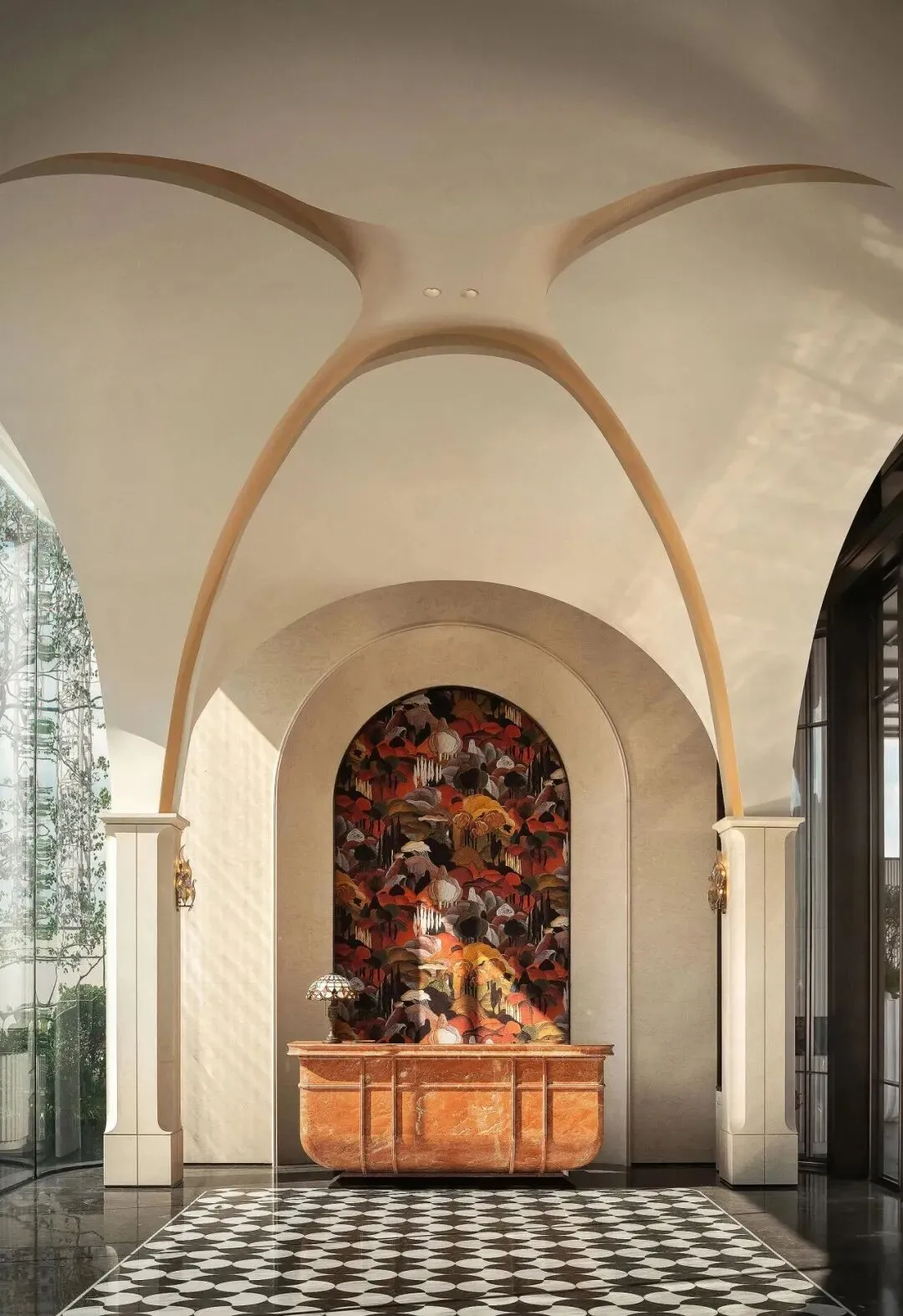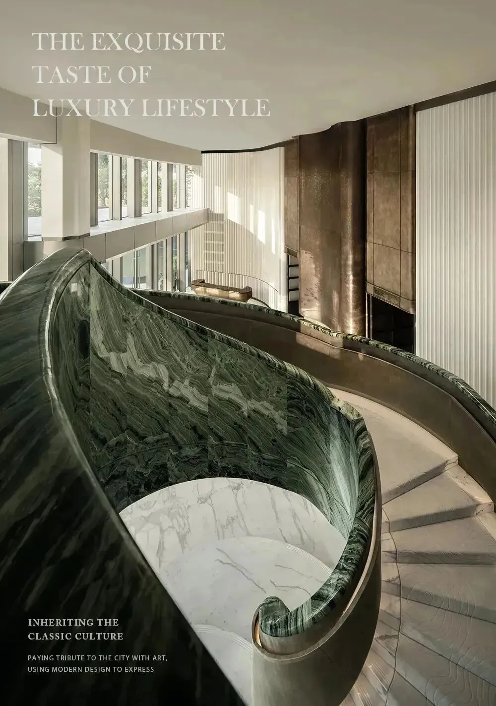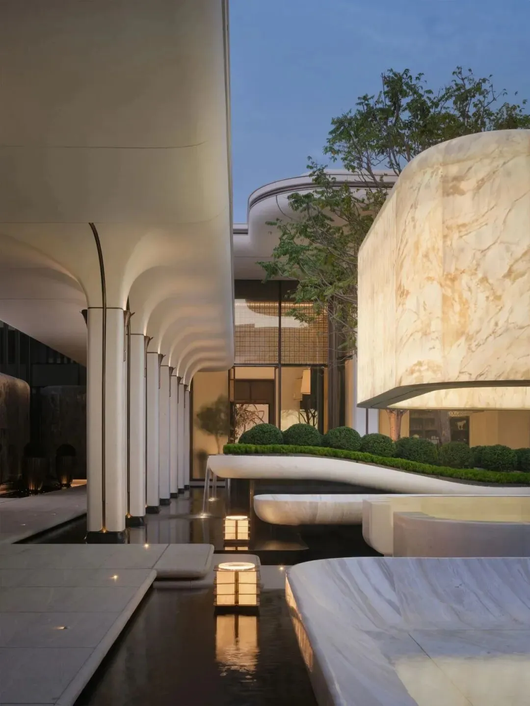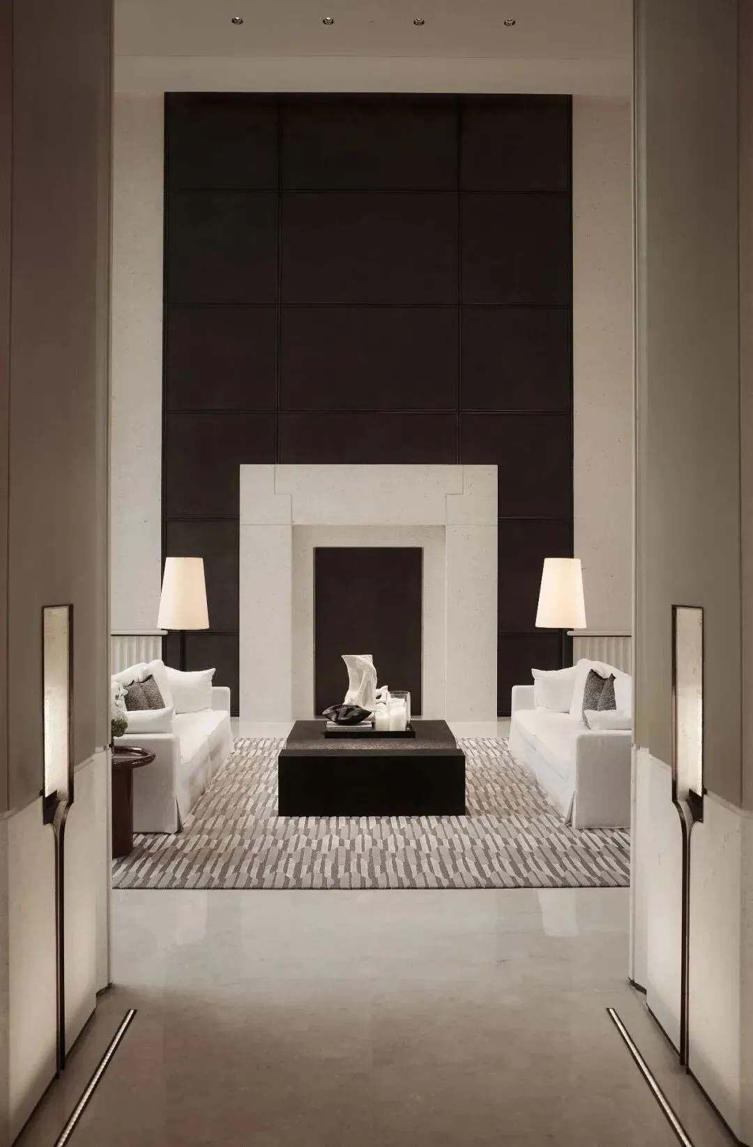 渡边智昭设计单元大堂等公共空间,以东方静谧融合西方美学,营造国际化生活方式。