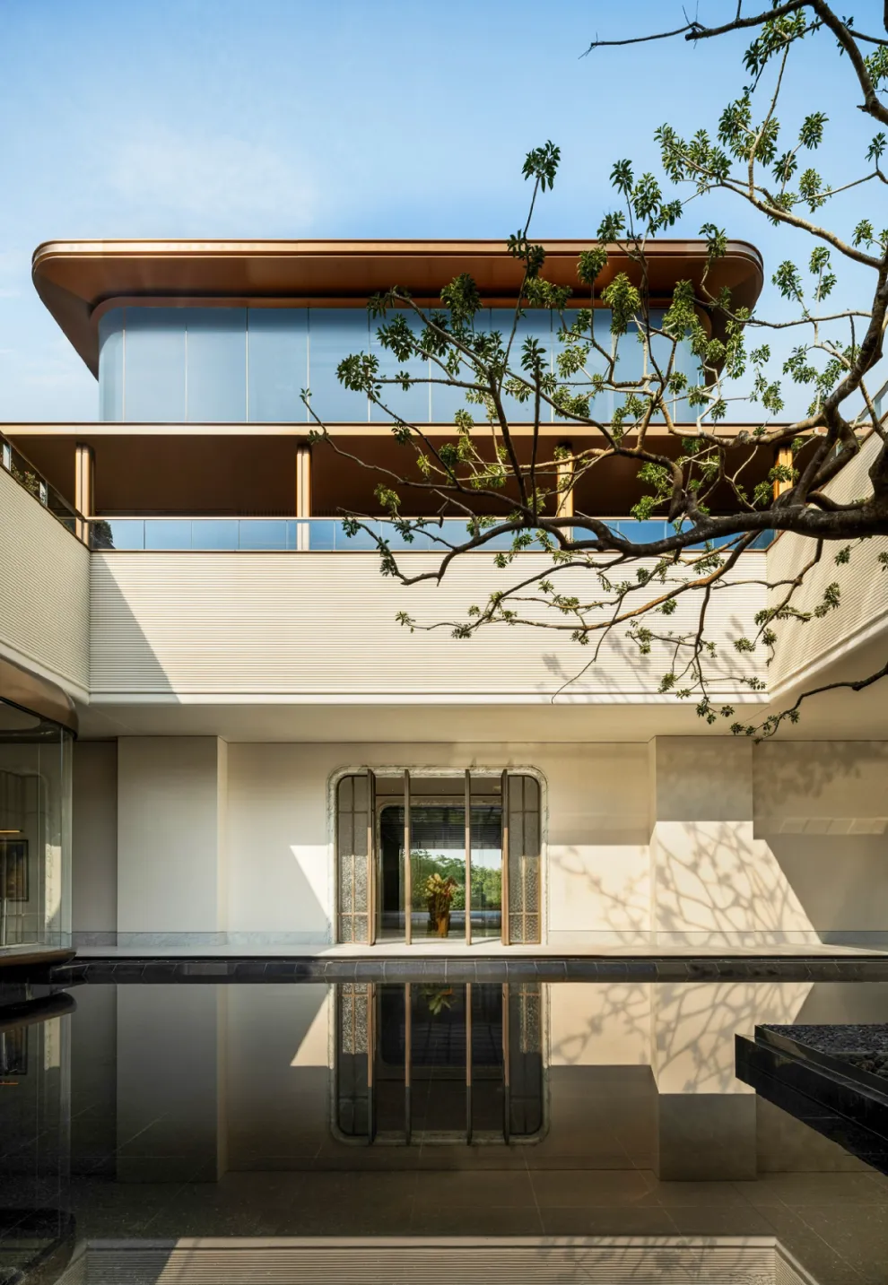 约1500㎡的会所由CCD郑中设计,包含行政酒廊、私宴厅、恒温泳池、高端健身房、天台露台水吧等功能区域,营造出东方典雅的空间氛围。