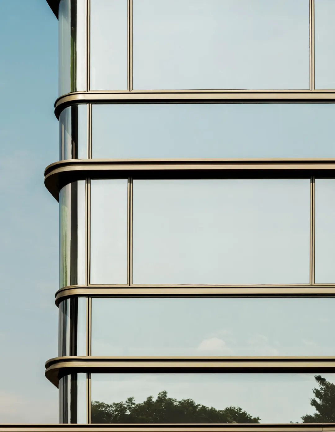 建筑立面采用大面积玻璃搭配全蜂窝铝板
