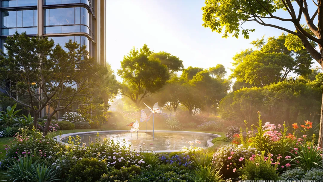 小区绿化率达35%,打造中央园林、镜面水院、凤凰木阵列等景观,种植近300棵大型乔木,营造自然生态氛围。部分楼栋可望见长隆的生态林地,傍晚散步可感受自然气息,部分户型还能直望长隆欢乐世界。