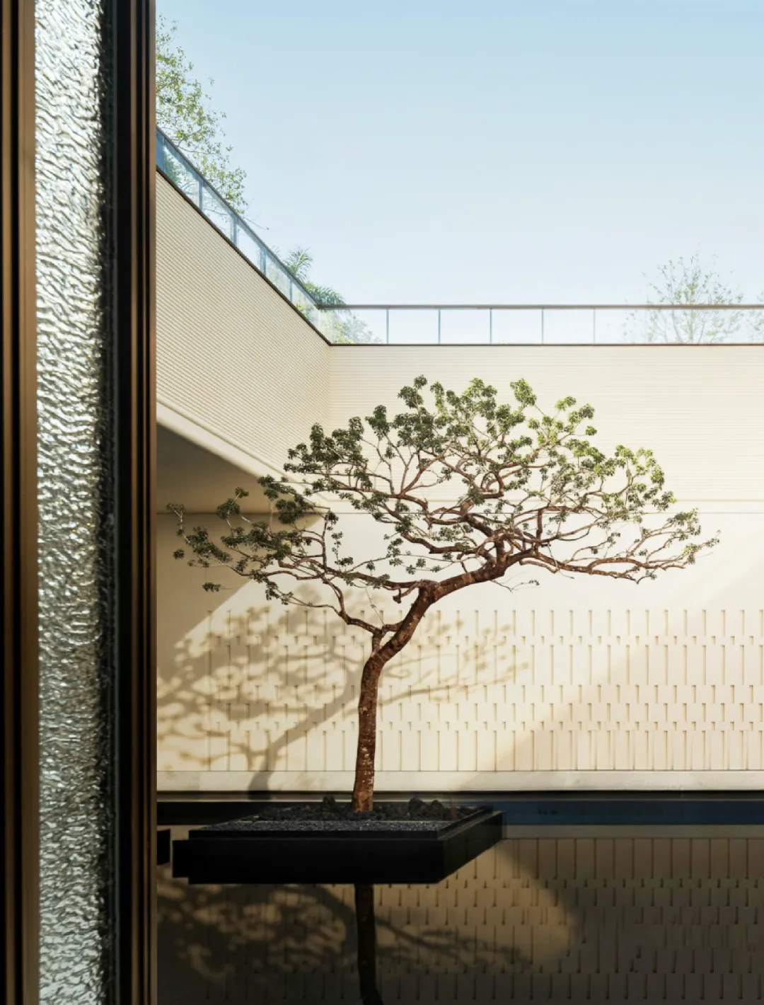 深圳首个采用铸铝工艺打造的住宅项目,搭配Low-E超白玻璃,耐腐抗老化,兼具美学与性能;基座以“海之岩”为意象,采用层叠砂岩石材,形成厚重基座与轻盈塔楼的虚实对比。