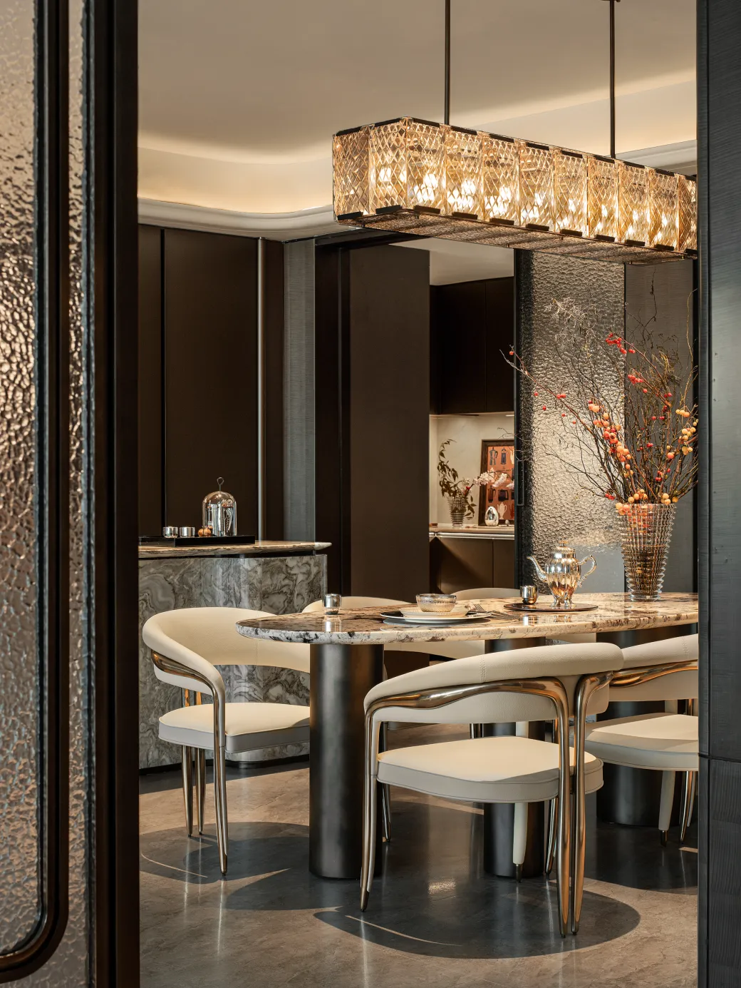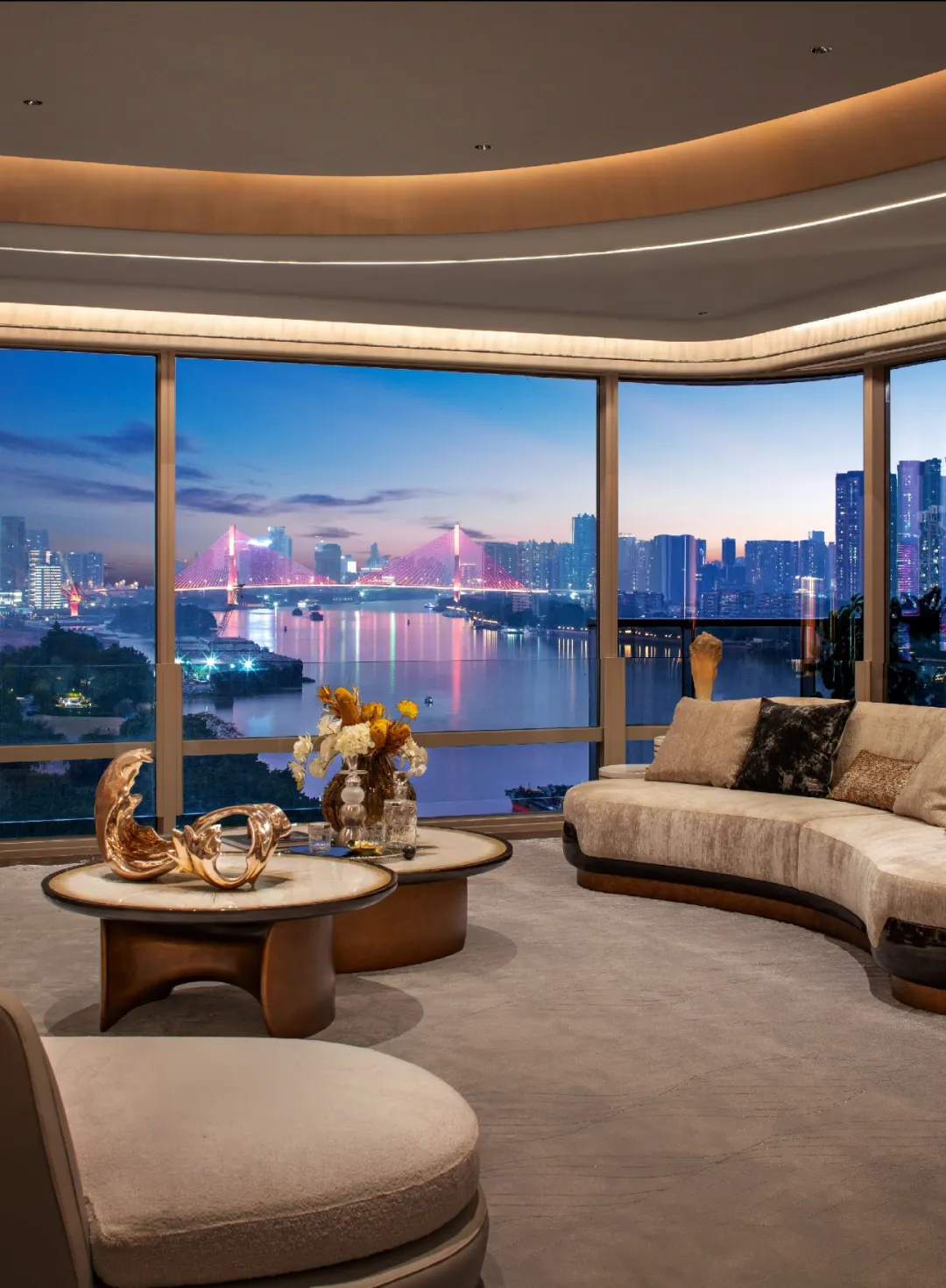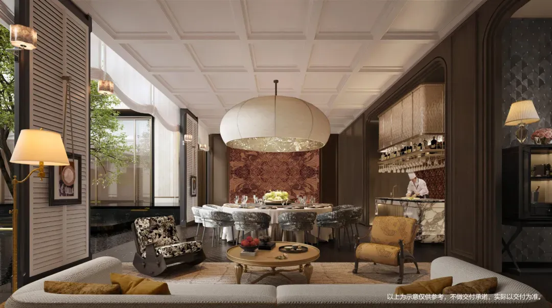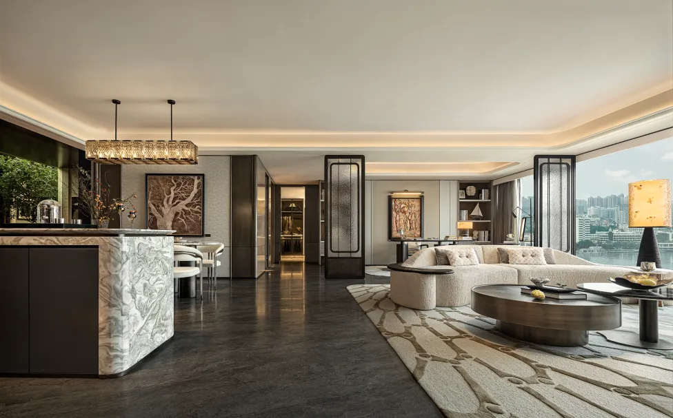 室内邀请邀请梁志天、郑忠(CCD)、孟也、程绍正韬等多位国际知名设计大师参与,融合东方美学与现代生活方式,打造可居住的艺术品。
