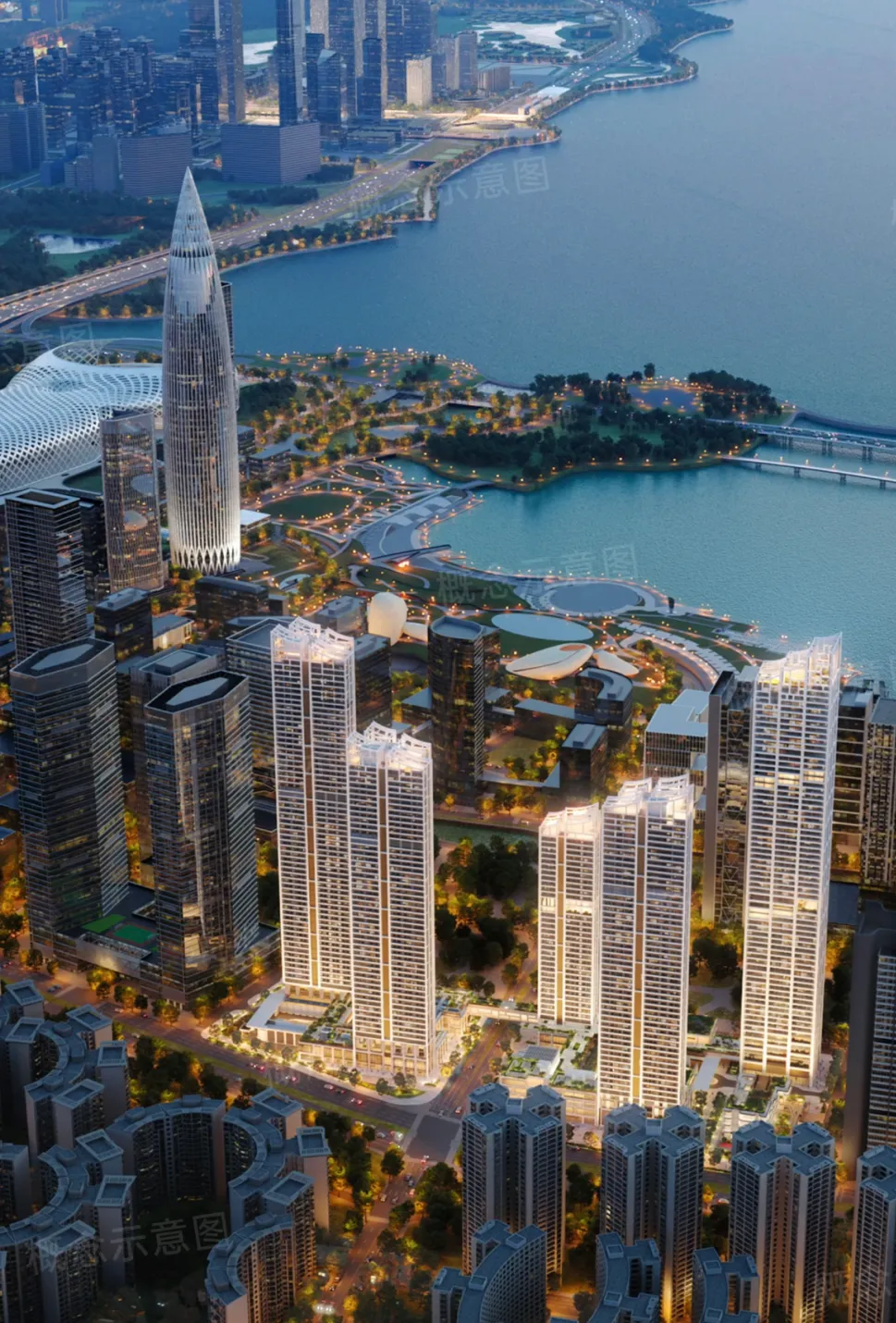 与深圳湾1号、华润大厦“春笋”等地标相邻