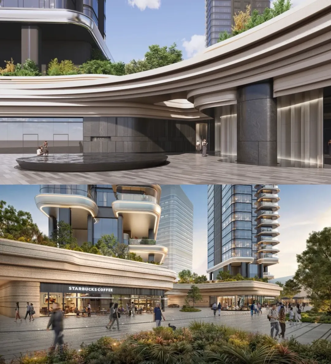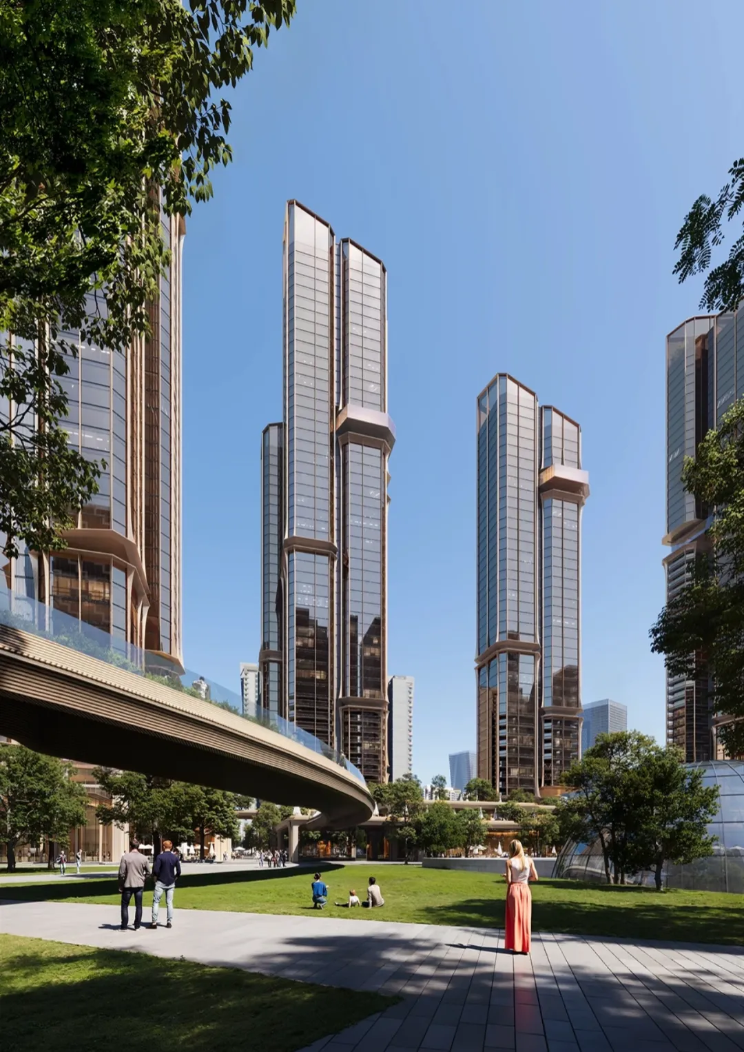 打造“地上三层、地下三层”的立体生态社区,将商业、配套、景观、活动空间叠加至住宅下方,形成超级底盘。通过中心庭院串联不同功能,实现空间互通、动线交织,提升归家体验与社区场景丰富度。二层设计慢行系统,与城市连廊无缝衔接,未来业主可通过连廊步行直达周边地标级配套,如深圳湾万象城、人才公园等,将顶级配套纳入生活半径。