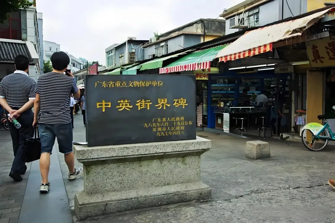 在深圳沙头与香港的交界处有一个特殊的商业街,深圳香港各占一半,街心以“界碑石”为界,故得名“中英街”。