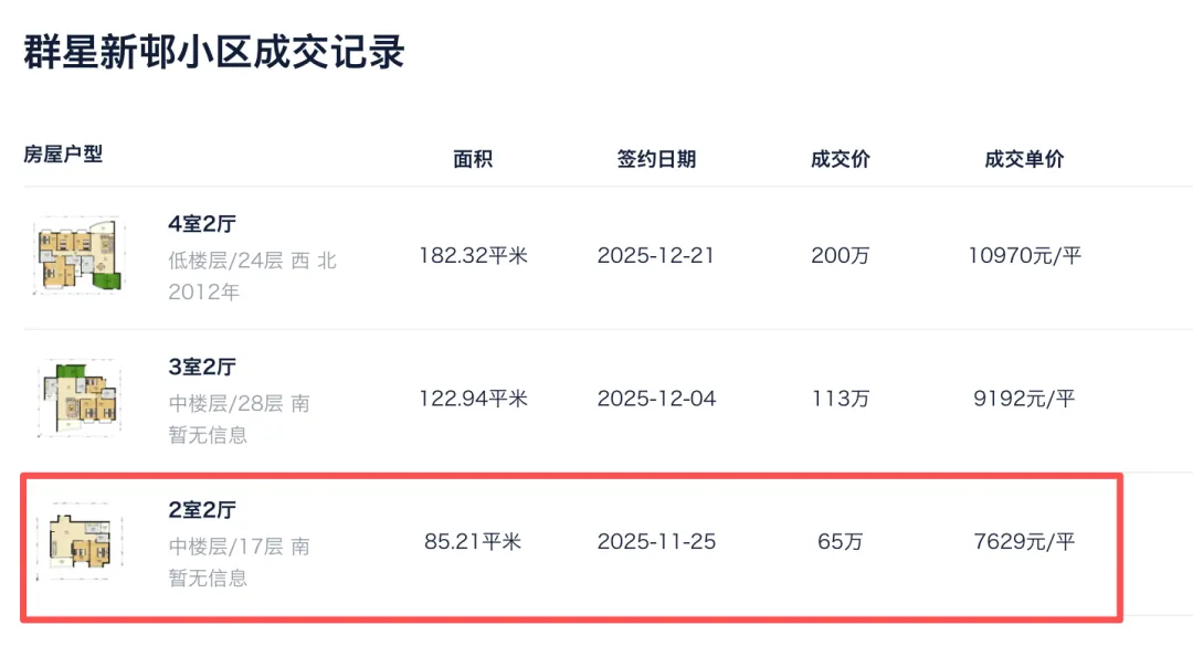 比如新塘地铁旁的这个小区,85平的两房一厅成交总价65万,月租金2000元,租售比算下来达到了3.7%,而且交通方便、商业配套丰富,可以说是租售比之王。