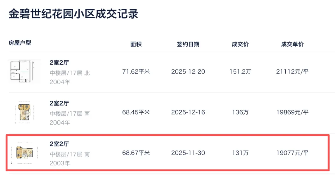 虽然公寓自住舒适度欠佳,但我又思考了一下,如果买来出租呢?能赚吗?为了得出公寓是否适合买来出租的结论,我打开了贝壳,看了看万科云城米酷最近成交的一套公寓。