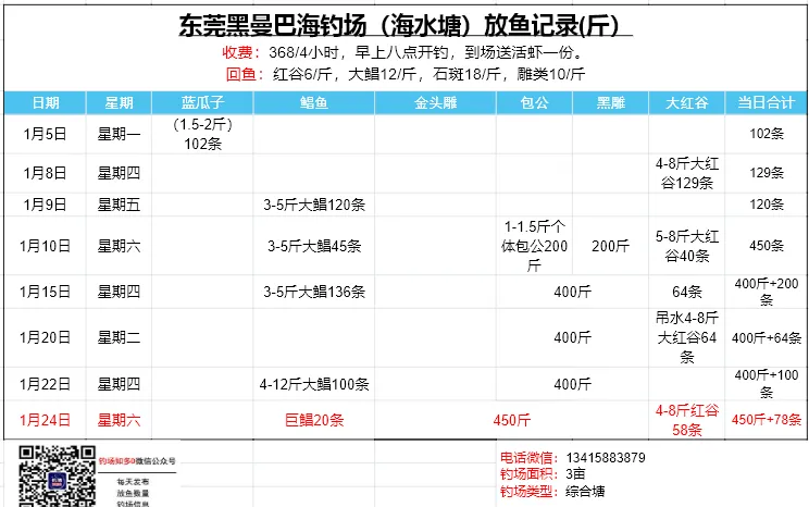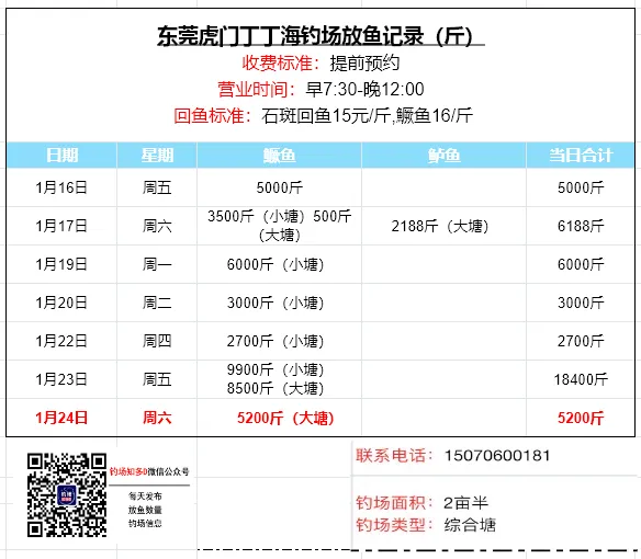 本文收录东莞地区比较知名和靠谱的钓场放鱼数据,
