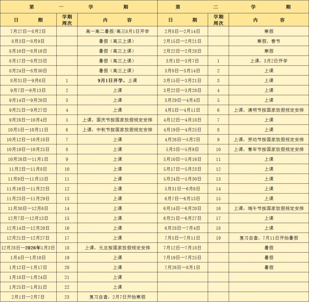 普通高中阶段学校校历