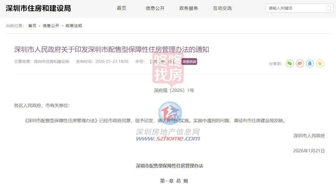 1月23日,深圳发布了《深圳市配售型保障性住房管理办法》(以下简称《办法》)。