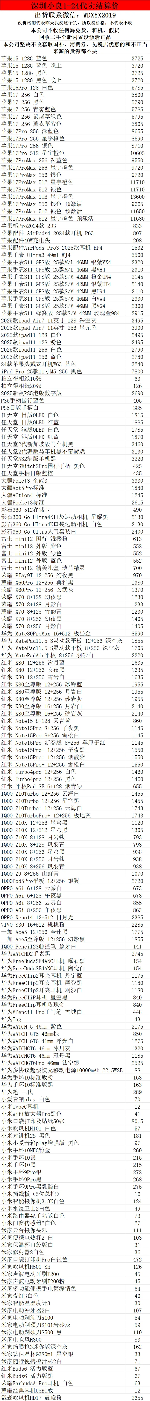 >深圳小良2026.1.24电子产品代卖结算价(美妆价格小程序查看)