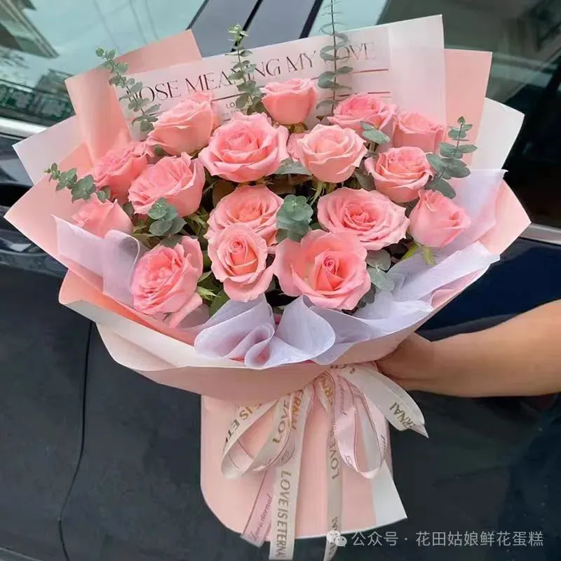 经典的红玫瑰,是情人节永恒的主角。它们娇艳欲滴,如热恋中的心跳,热烈而急促。11 枝红玫瑰组成的花束,寓意着 “一生一世只爱你一人” ,精心搭配上绿色的尤加利叶和精致的满天星,再用红色的丝绒包装纸包裹,系上黑色的蝴蝶结,简约而不失高贵,将恋人之间的深情厚意展现得淋漓尽致。而粉色的玫瑰则宛如初恋的羞涩,温柔而甜美,搭配白色的桔梗和淡蓝色的勿忘我的花束,代表着 “铭记于心的爱” ,给人一种清新而浪漫的感觉,非常适合那些想要表达含蓄爱意的人。