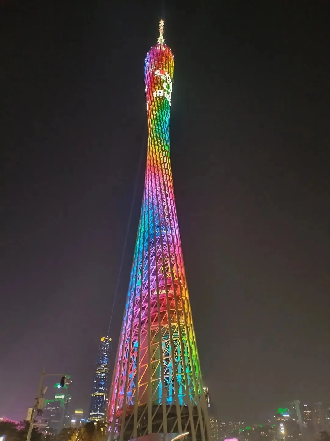 令我们惊喜的是,灯光秀远不止“小蛮腰”的曼妙。整个广州塔广场、珠江新城璀璨的建筑群、江面上徐徐往来的观光游轮,跨江桥上三角形电子屏里生动的图案,以及时而闪现的“广州欢迎您”和“老城焕发新活力”等的字样,共同织就了一幅流动的岭南画卷,太炫了!抑制不住内心的激动,我和闺蜜都忍不住和家人视频,分享这份意料之外的华彩。(更多图片见小蛮腰(广州塔)周围的各种灯光,美到词穷)