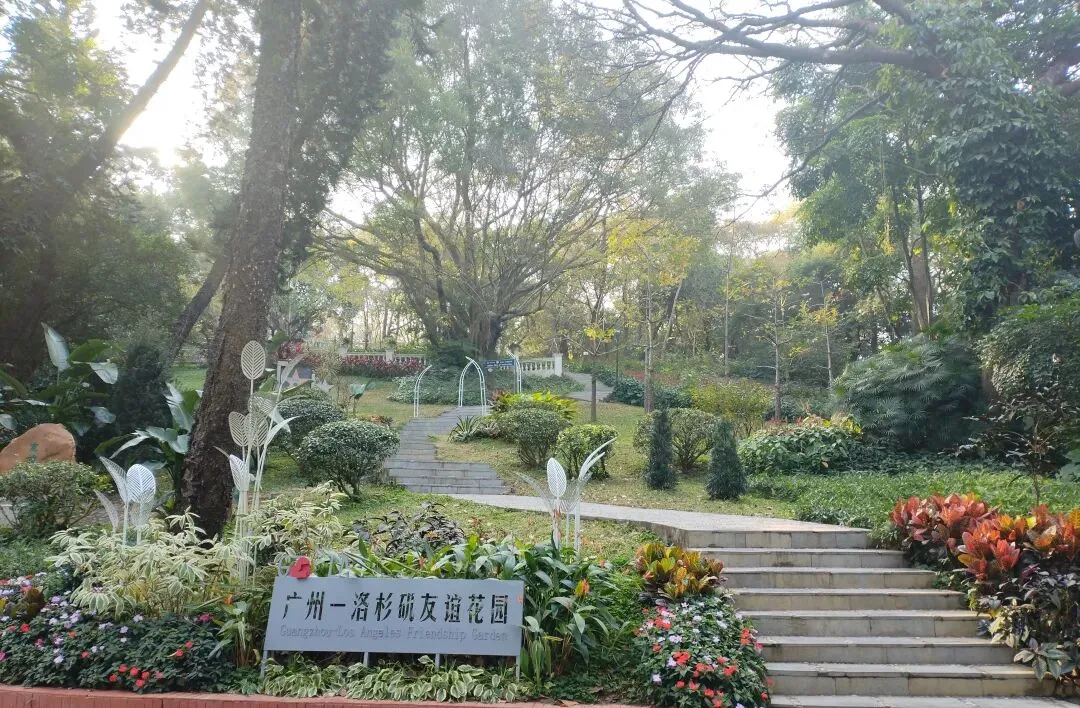 公园东西方向不长,最右侧是越秀湖。我们沿湖前行,看湖中波光轻漾,湖中桥,装点着各色三角梅,恣意地开着,湖光花色,怎一个美字了得!湖畔,一排羊蹄甲花正开,高大的乔木,满树的温柔,想起城市里随处可见的羊蹄甲花了,猜测它是不是广州的市花?百度了才知道,广州的市花是木棉花,并不是羊蹄甲。只是现在不是木棉花开的季节。