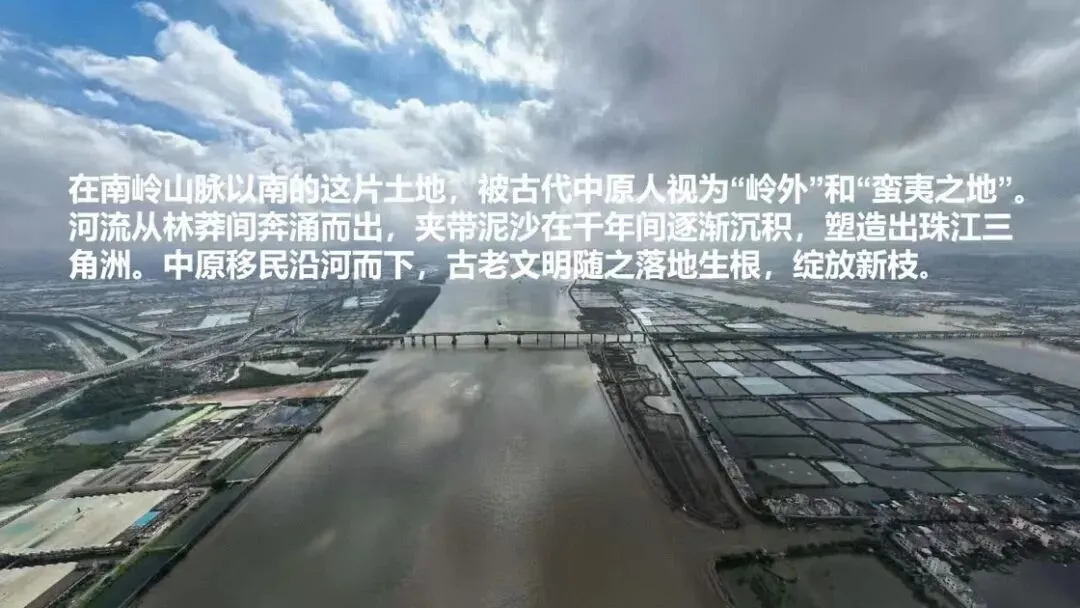 伴随移民南迁,古老中原文明随着流淌的河水在“岭外”的土地上落籽、生根。永不枯竭的河水流淌千年,在现代的西江、北江、东江、流溪河边绽放新枝,开出新的文明之花,结出丰硕的果实。