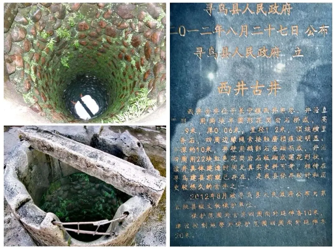 东江源头的寻乌县城中有一些古井遗迹,其中保存比较完整的西井古井,井中水深6米,水面距离井口地面仅4米,水位较高,可以推测古井距离河流较近,水量大,水质好,反映了古代当地优良的自然生态,是源区水脉清冽的实物证明。