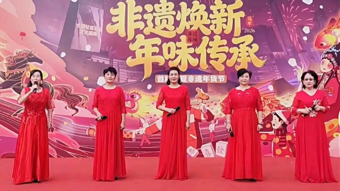 一袭红装聚目光,深情款款诵华章。