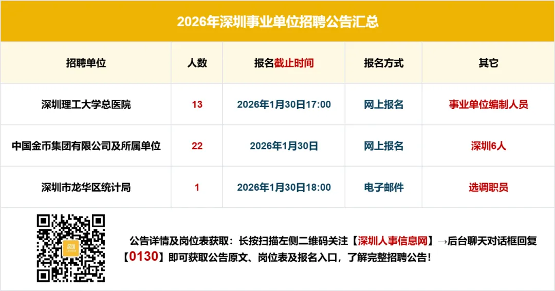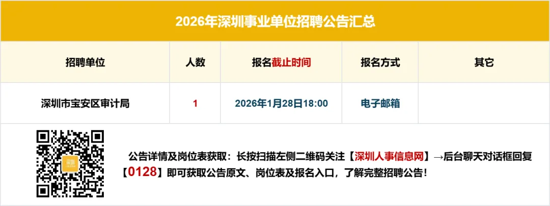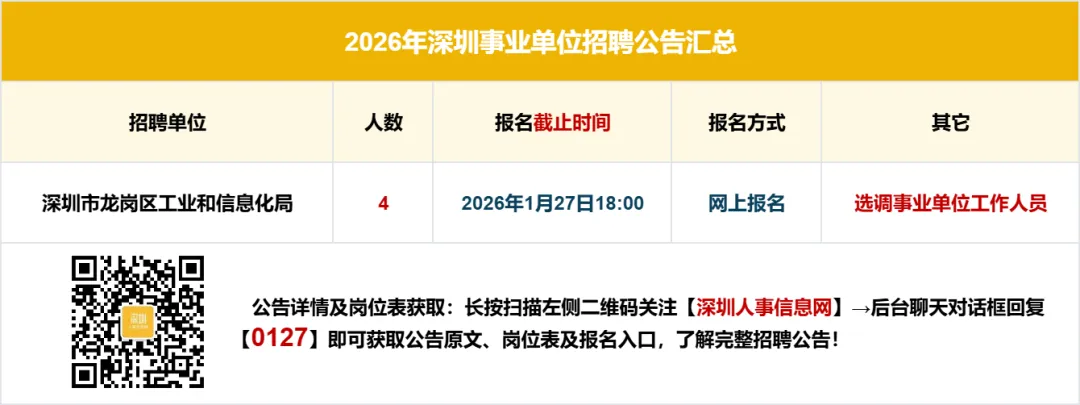 【温馨提示】本公告内容均来源于各大官方招考单位,若涉及侵权和错误信息,请扫码上方客服二维码联系予以更改或删除。