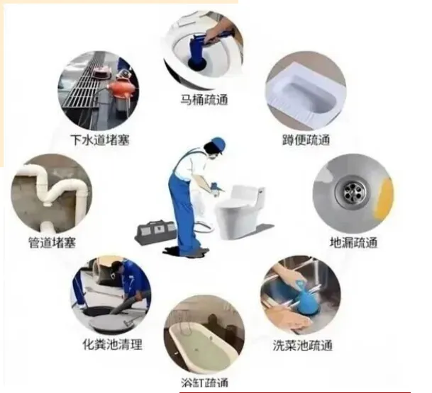 疏通各类下水道、马桶、蹲厕、地漏。