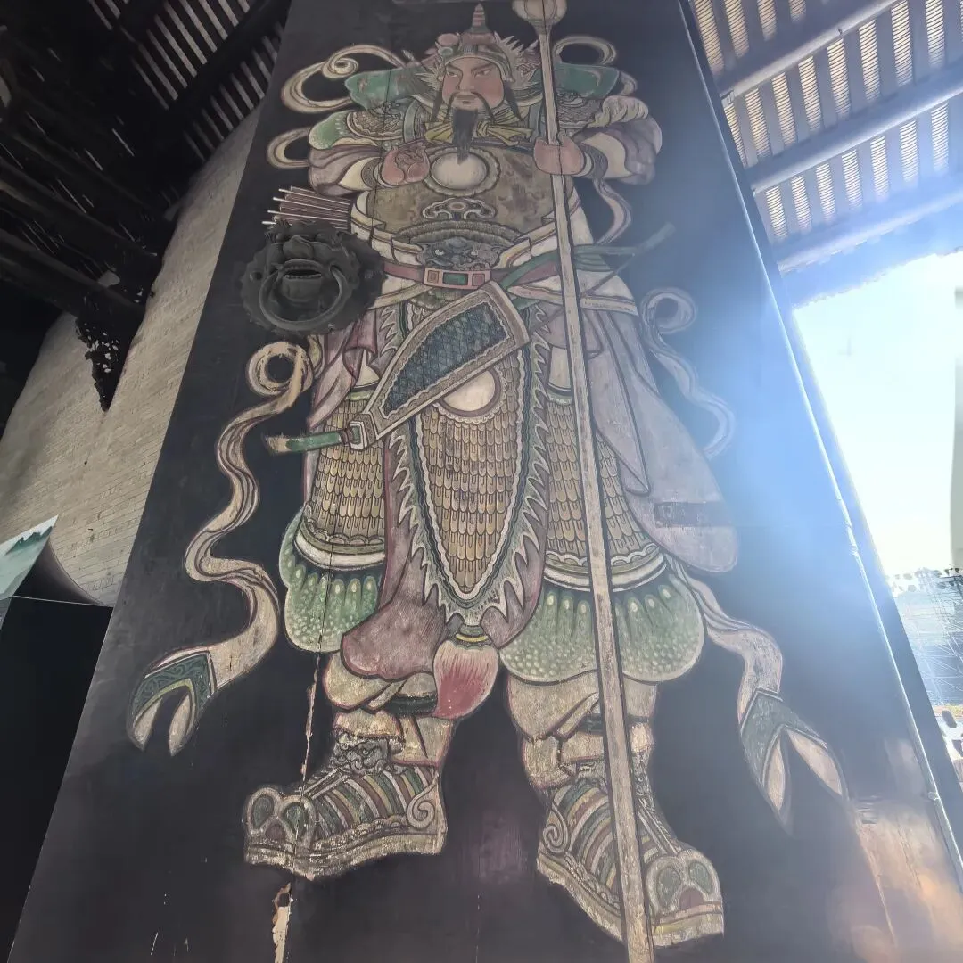 彩绘指大门的门神,秦叔宝和尉迟恭。