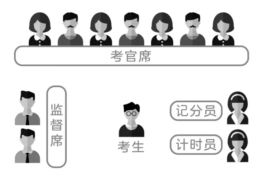 7评议:考官根据考生的面试表现,进行综合评议。每位考官给出一个成绩。记分员根据每位考官给出的成绩确定最终成绩。