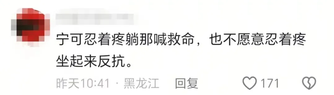 其实我特别能理解,除了极度恐惧导致反应不过来外,还有就是因为脚太疼了吧。毕竟换做是谁,遭遇这样的飞来横祸,恐怕都难以保持冷静。
