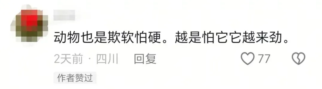 相反,像外卖小哥这样,面对恶犬不退缩、不慌乱,甚至主动反击,肢体语言坚定、语气强硬,狗会觉得这个人是块“硬骨头”,自然不敢轻易招惹。
