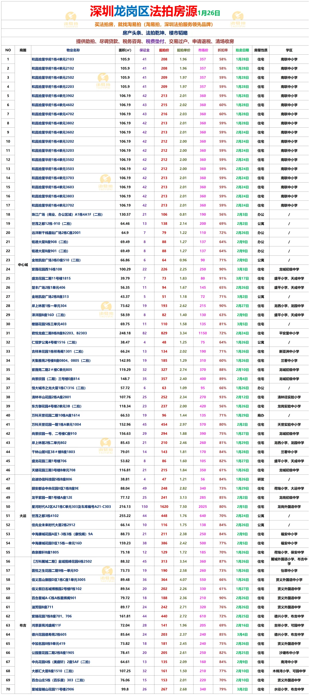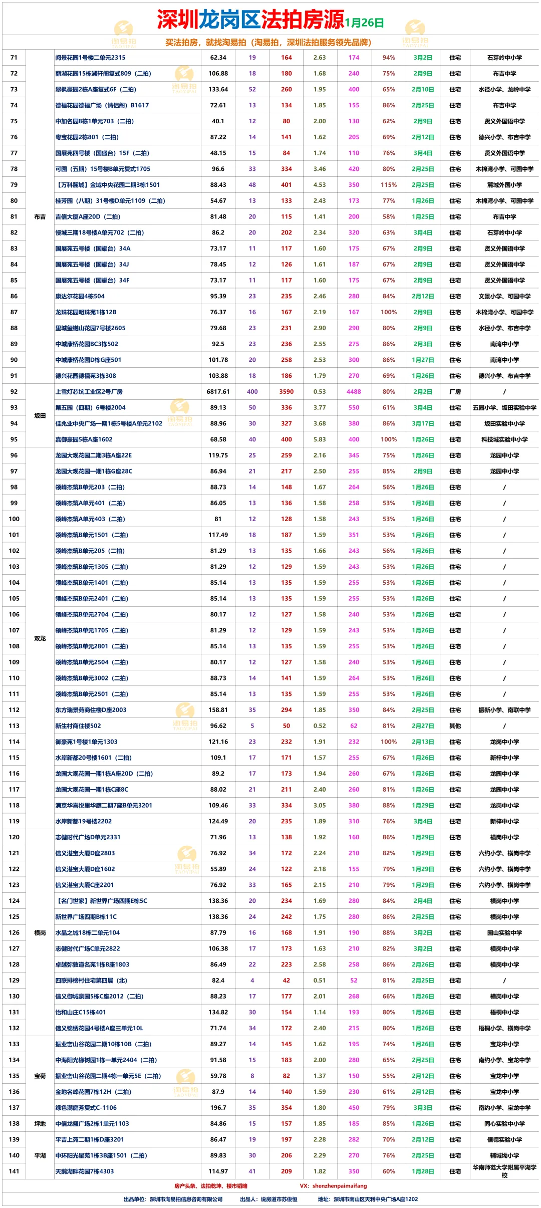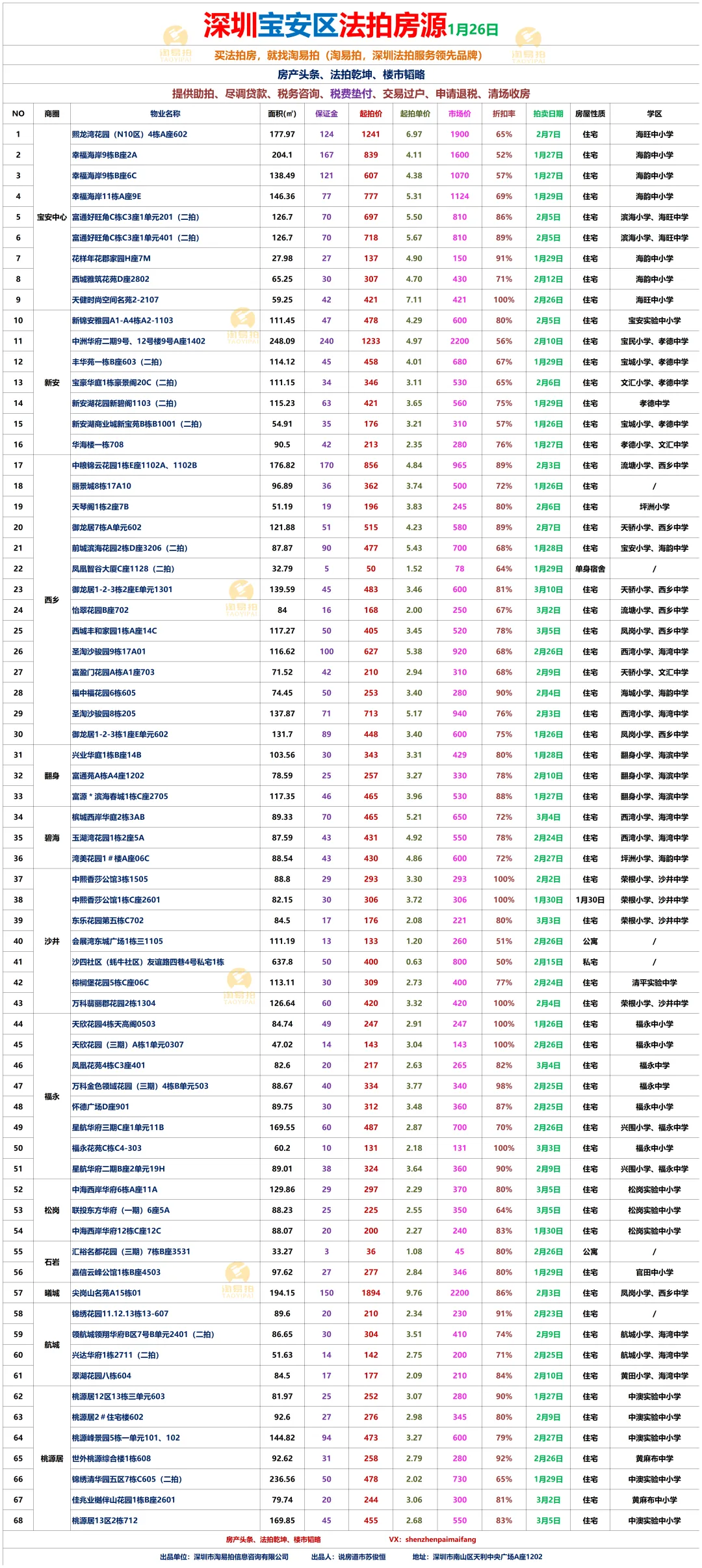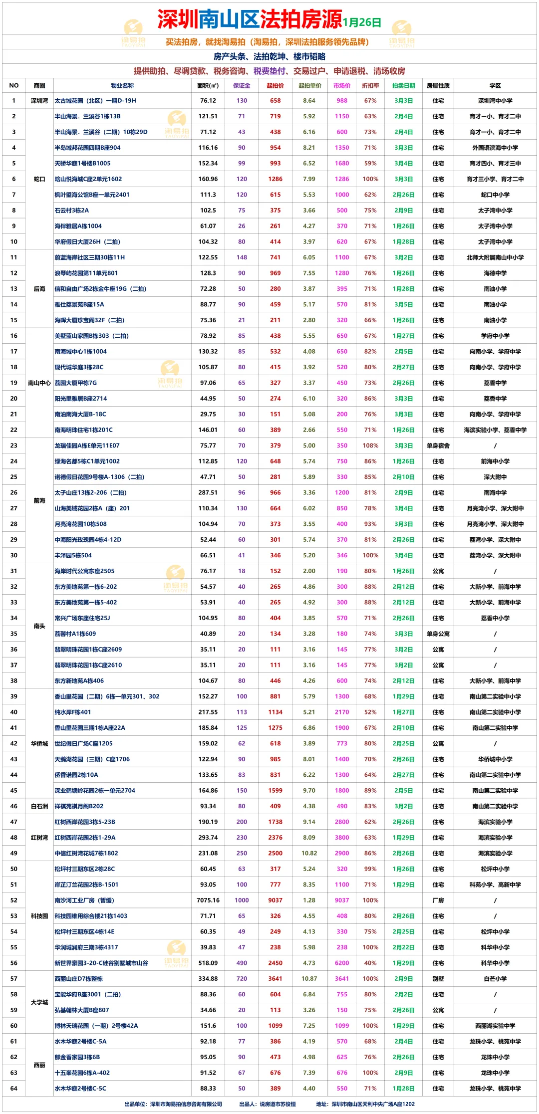 深圳市淘易拍信息咨询有限公司,是深圳早期的,也是当前深圳规模最大的拍卖房一站式服务平台。秉承“站在客户的角度为客户买房”的经营理念;恪守“诚信为本、 客户至上”的服务宗旨。