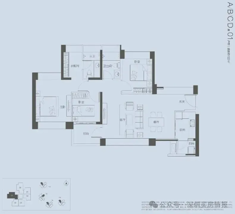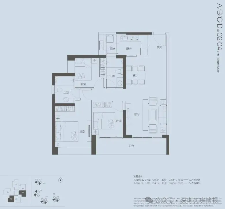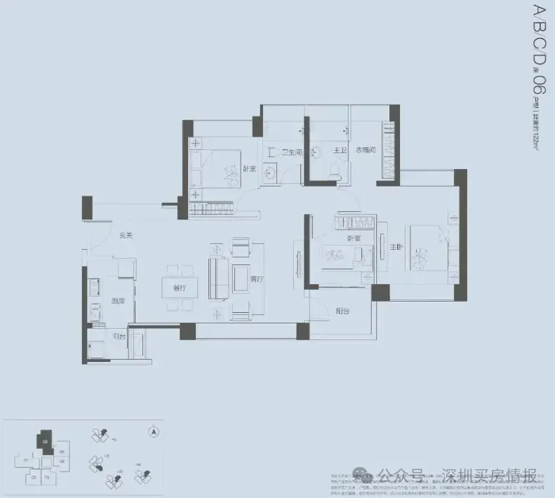 【产品面积段】约123㎡三房(横厅、竖厅)