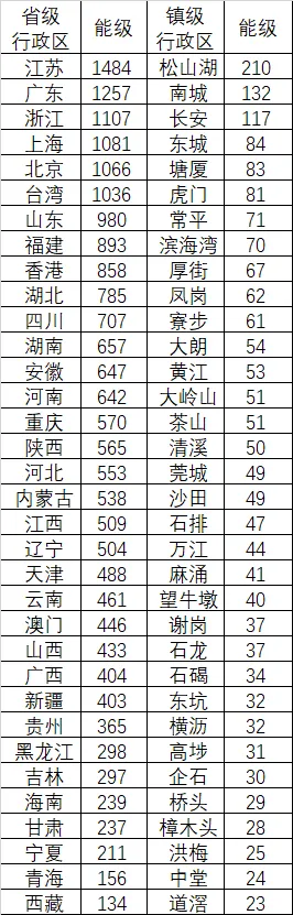 综合以上分析,本文推荐用区域能级的指标来把东莞34个“镇级行政区”跟全国34个省级行政区对应起来。