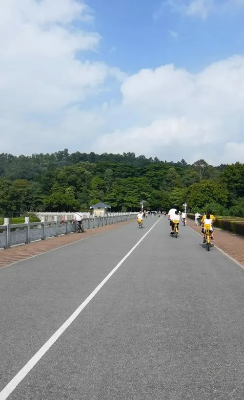 大夫山有个很聪明的地方,它用骑行这个动作把整个公园串起来了,你要是走路逛,说实话这公园太大了,走一圈累个半死还觉得没看到什么,但一骑上车,整个空间的尺度就对了。骑行的速度刚好让你能注意到路边的细节,又不会慢到无聊,而且大夫山的车道设计很舒服,不是那种硬邦邦的直线,是顺着地形起伏转弯,骑着骑着你会发现这个过程本身就是目的,不是为了赶到某个终点。