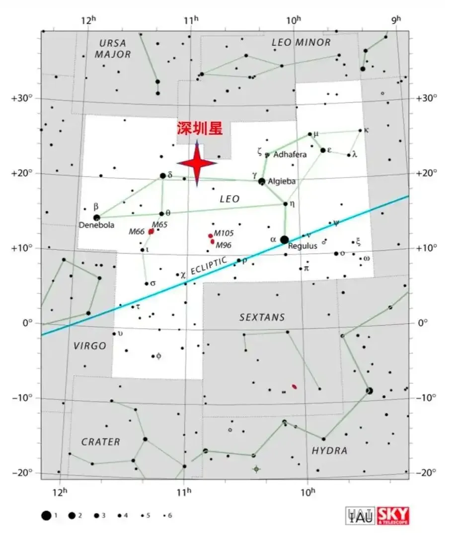 “深圳星”发现时位于狮子座赤经10 53 49.62,赤纬+22 54 12.8