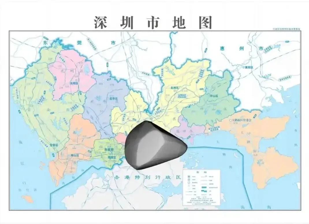 “深圳星”直径为18.68千米,比99.9%的小行星都大,大约是深圳南北方向最窄处的2倍,相当于深圳市科学馆到盐田港的直线距离。