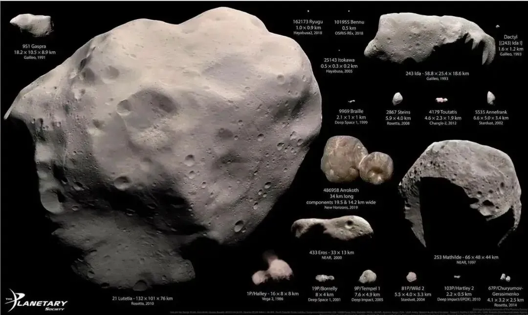 部分航天器探测过的小行星、彗星