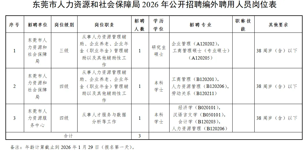 附件:东莞市人力资源和社会保障局2026年公开招聘附件合集