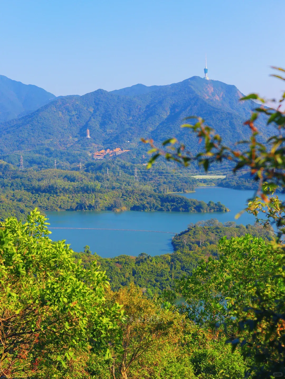✔️登顶金山亭高处俯瞰深圳水库,颇有“千岛湖”的既视感,也是深圳网红打卡机位~